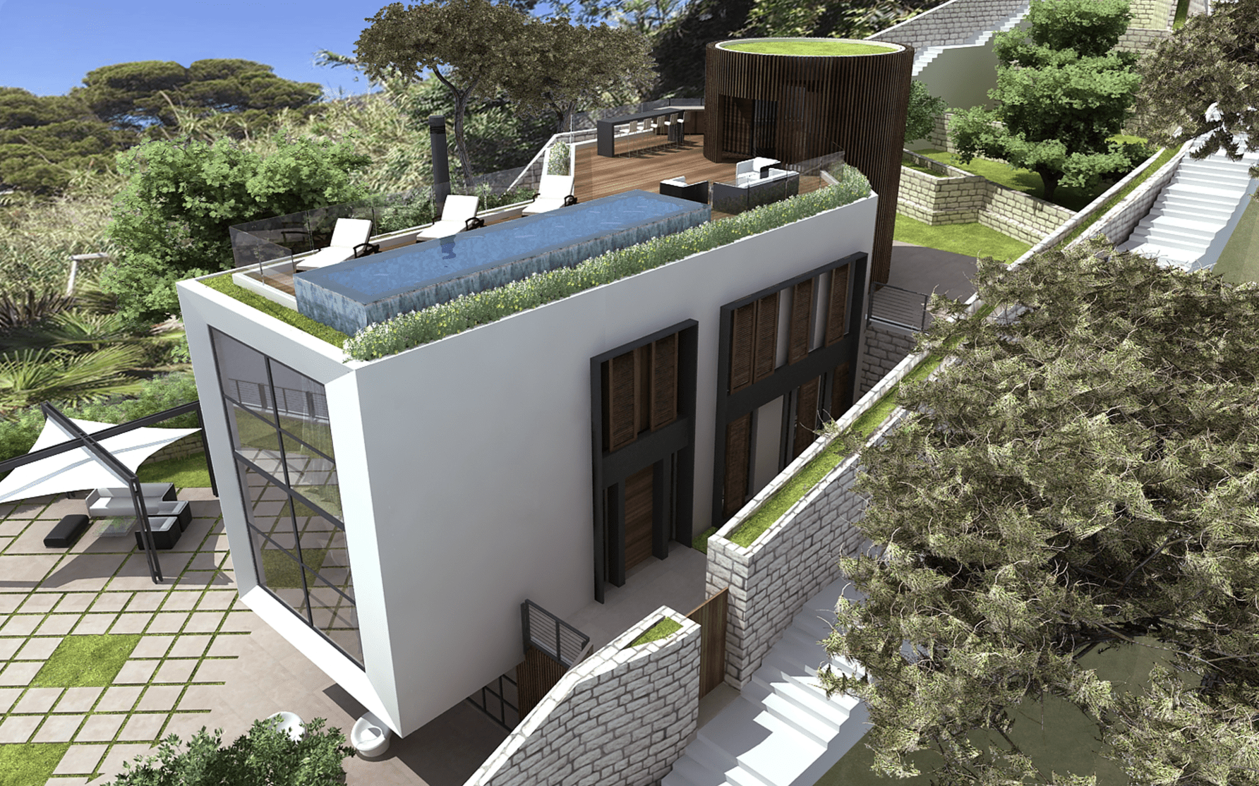Architecture, Landscape, Residential, Villa, Rooftop