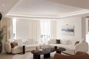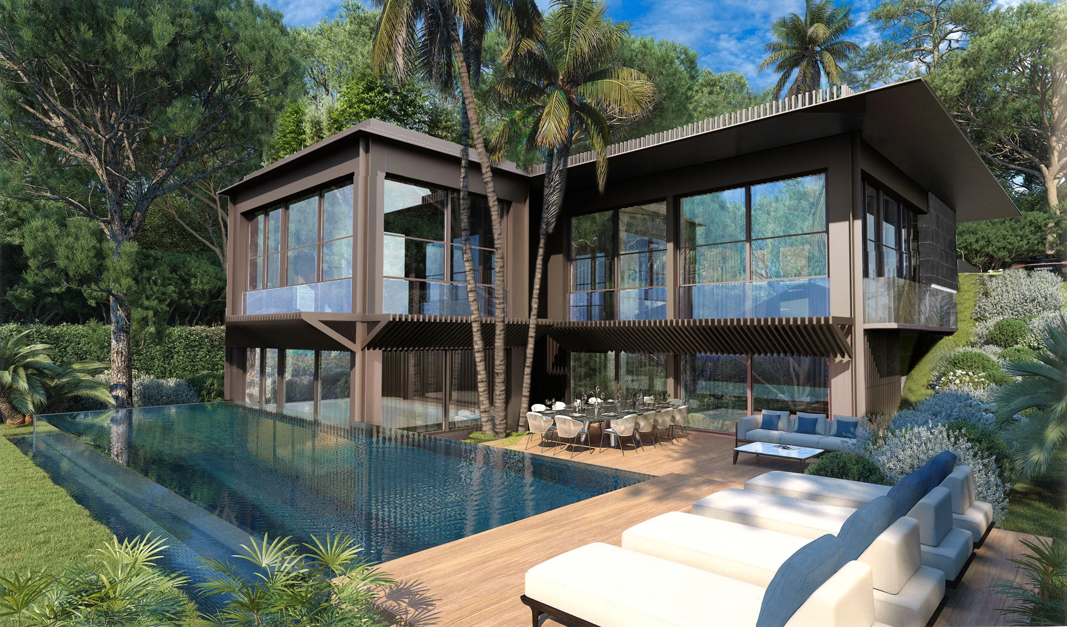 This intriguing and visually pleasing game of offset between these two volumes gives this villa its unique, striking architectural character.
