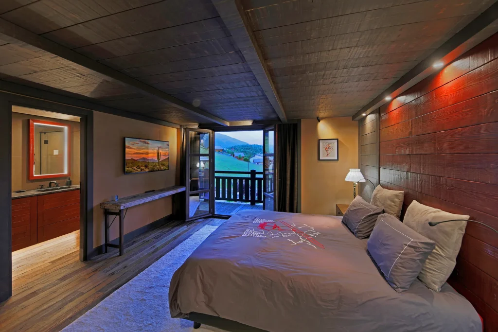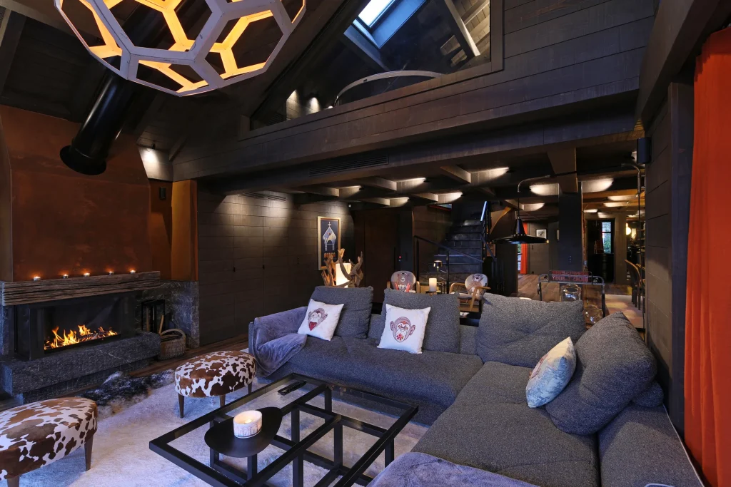 A subtle monkey motif runs throughout the interiors, offering a narrative thread without overt repetition. This playful presence gives the chalet its name, “The Monkeys Cabana,” introducing a light and unexpected identity within an otherwise refined alpine setting.