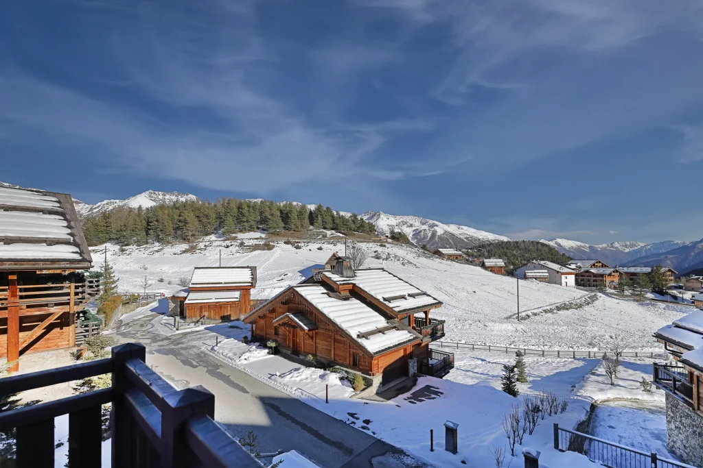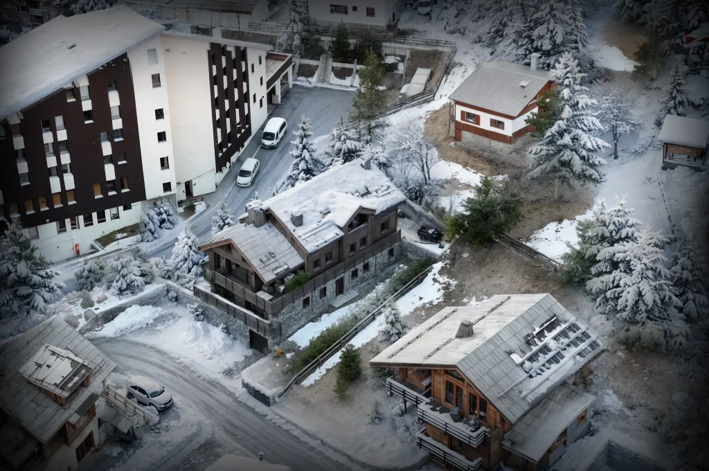 Built on the final plot of its development and surrounded by existing constructions, the chalet elevates its main living spaces above visual constraints, opening views toward the Mercantour National Park, Isola 2000, and the Italian Alps.