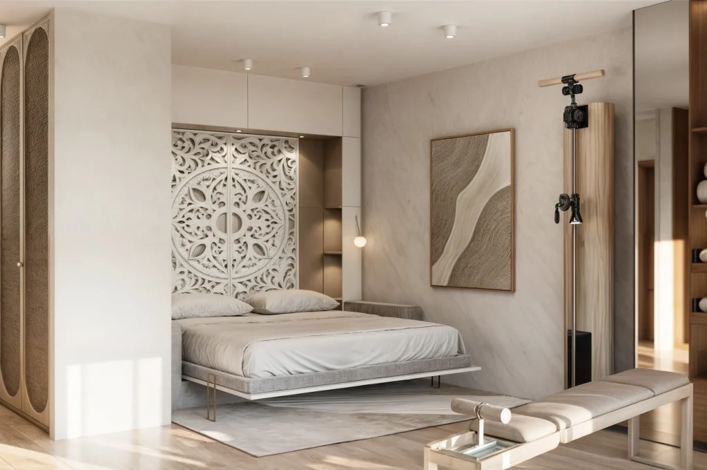 This intriguing and visually pleasing game of offset between these two volumes gives this villa its unique, striking architectural character.