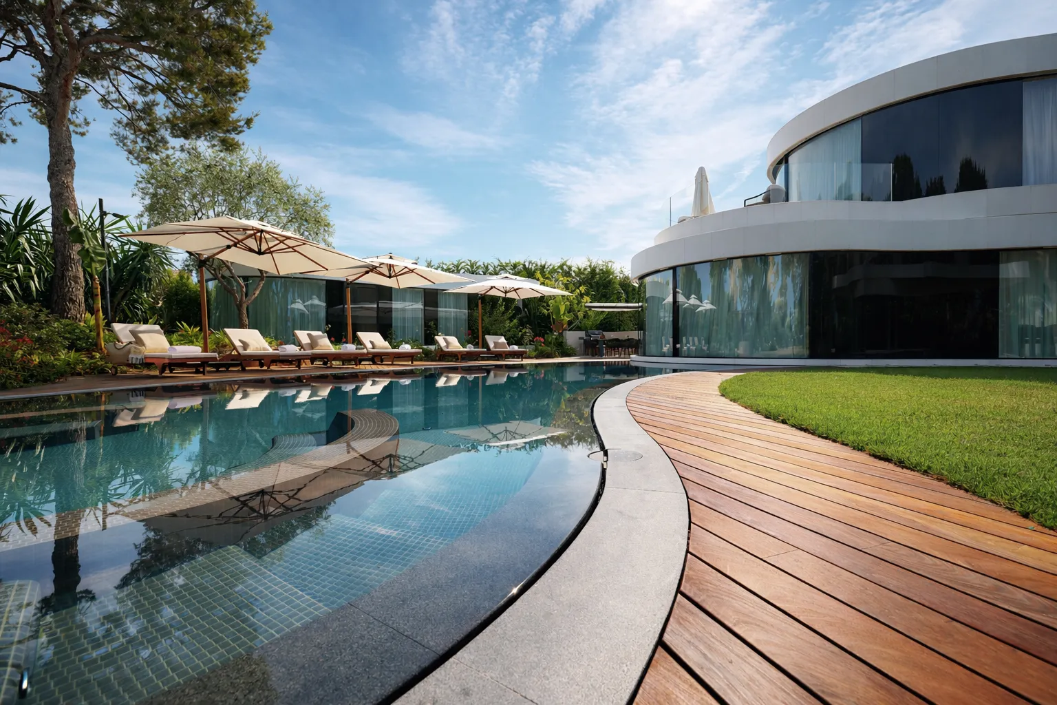 This intriguing and visually pleasing game of offset between these two volumes gives this villa its unique, striking architectural character.