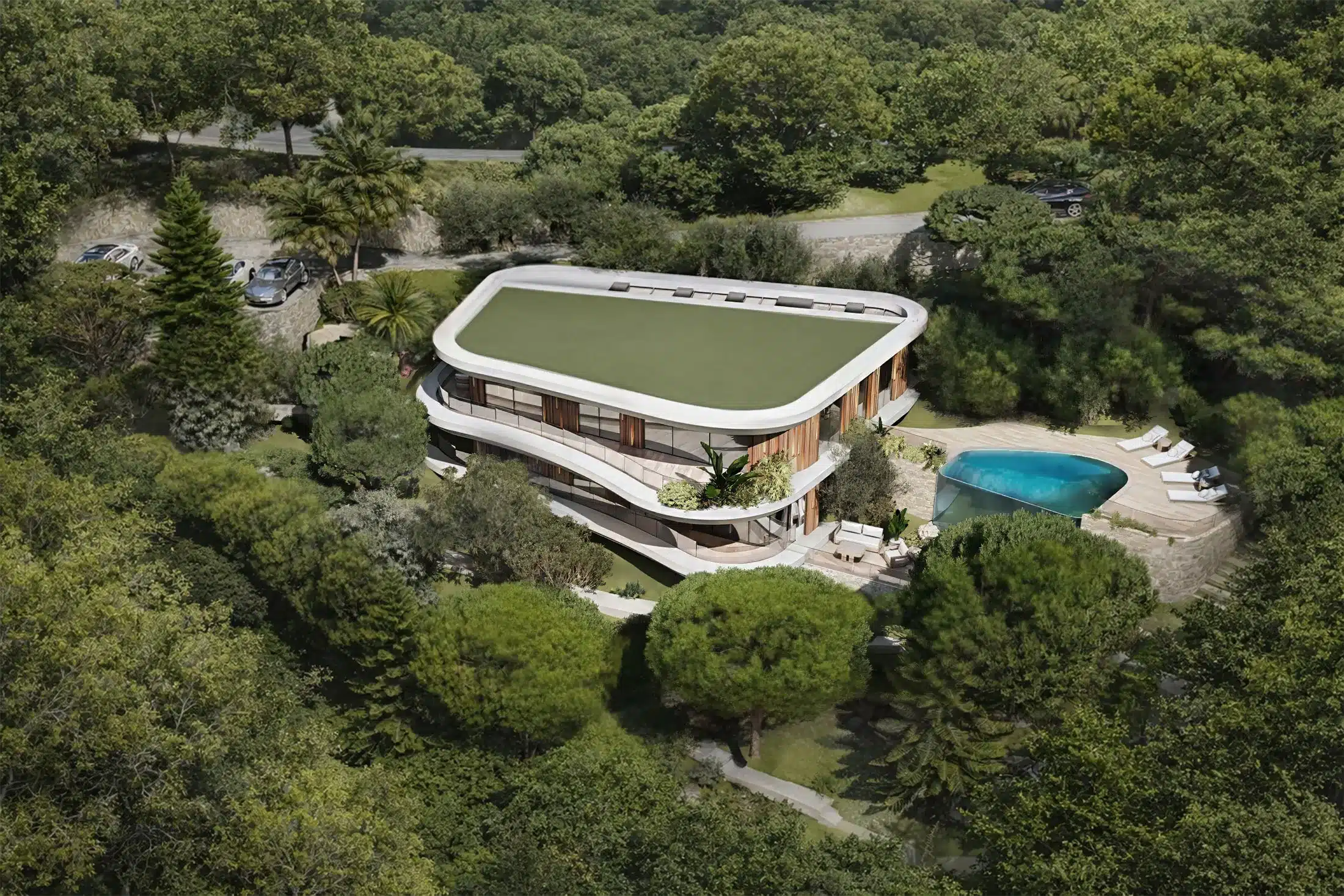 This intriguing and visually pleasing game of offset between these two volumes gives this villa its unique, striking architectural character.